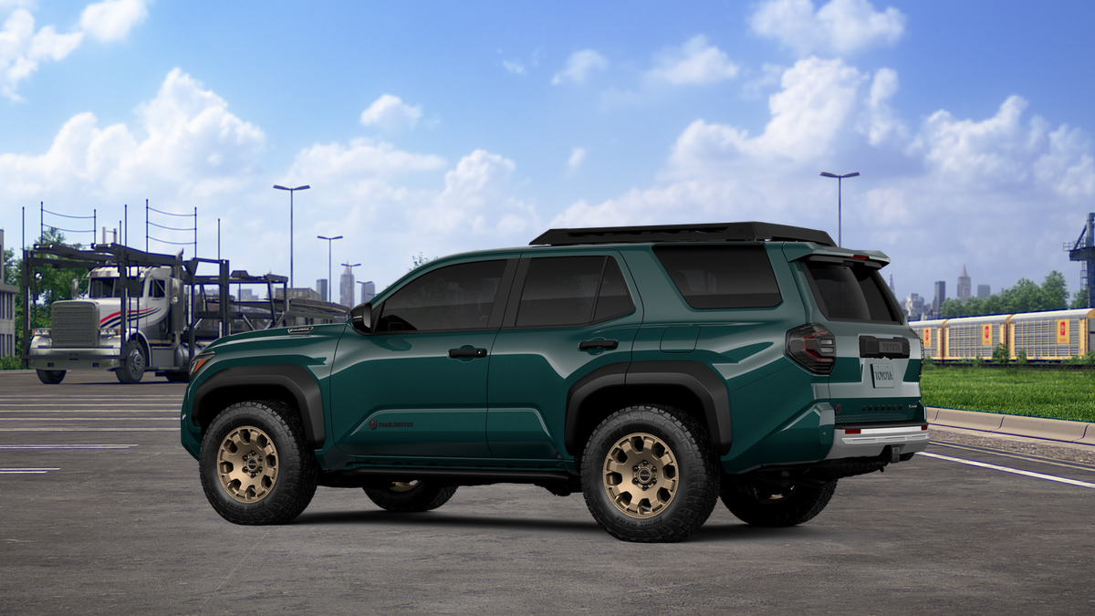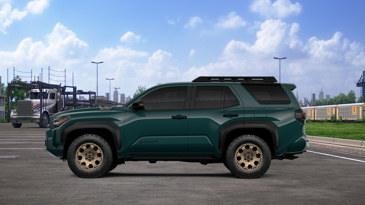 - Black "TOYOTA" heritage grille, door handles and overfenders; color-keyed mirror caps and rear spoiler; black "TRAILHUNTER" and "4RUNNER" badges