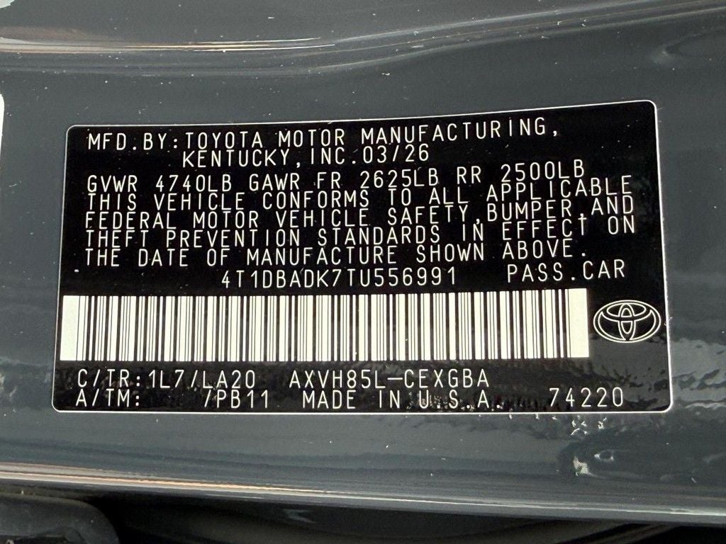 - Vehicle Name: Toyota Camry