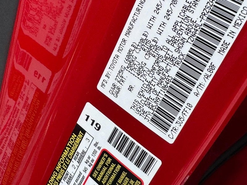 • Vehicle Name: Toyota Tacoma 4WD